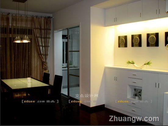 凭心而论,这是一个"平常"的作品,她并不像现在的不少设计那样激进,火力炽烈,吸人眼球。但是也带有她自己的“特色”——平和清淡却有隐隐透露着自己的魅力,如同天上有云,不似晴空万里一览无余,却也不浓,不至于压迫人心;地上有风,不会飞沙走石只是徐徐吹来,温暖人心。 她体现一颗平常心,不在乎什么所谓“风格”,也不在乎什么“造型”,她只是一个家!在貌似跟大多数家庭相似却又整洁的环境里,主人可以随意摆放所喜欢的东西,可以随意将从国外带回来的工艺画挂在墙上来纪念自己曾经的游历;儿童房里可以随意大方地安置儿童成品家具;即使在主卧也可以将憨憨的小猪枕头摆在床背上,而不必正襟危坐地非要将自己的家弄成所谓样板房般严肃认真。 在貌似平凡的大环境下,除开主人个性化的物品外,在局部(比如主卧门对面的壁),却也有着耐人寻味的造型(类似时间隧道的开口?)或者展现带点异国特征的小角落(电视旁泰国的粗丝花瓶,锡盘)。又如在沙发背后墙上的壁灯灯光下,不仅可以营造出适合于谈话的亲切气氛,还能将砂岩的沧桑隽永充分展示。从而在居家、自然的整体环境增加了点历史文化因素的厚重,不再单薄平庸。 家就是这样,平常!却不可忽视!